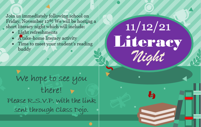 - Start talking to your class about the literacy night early and send out weekly reminders.